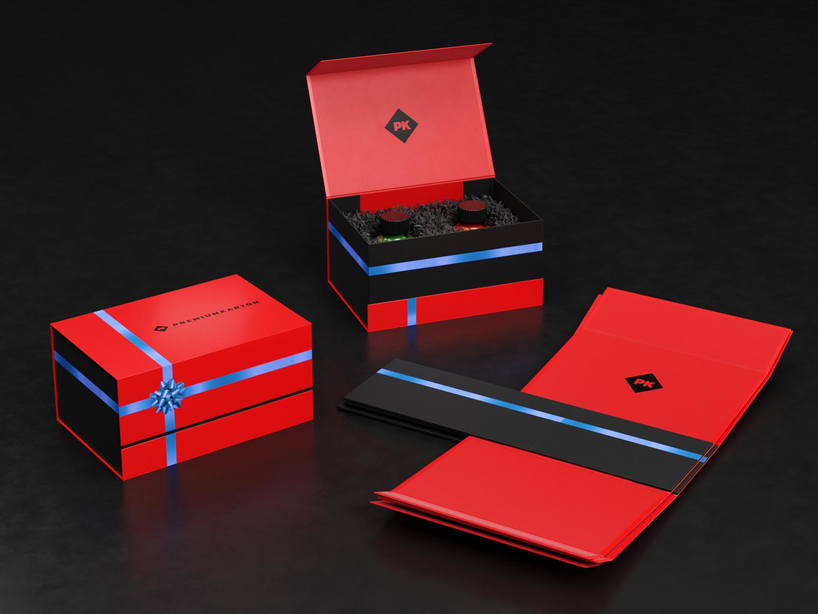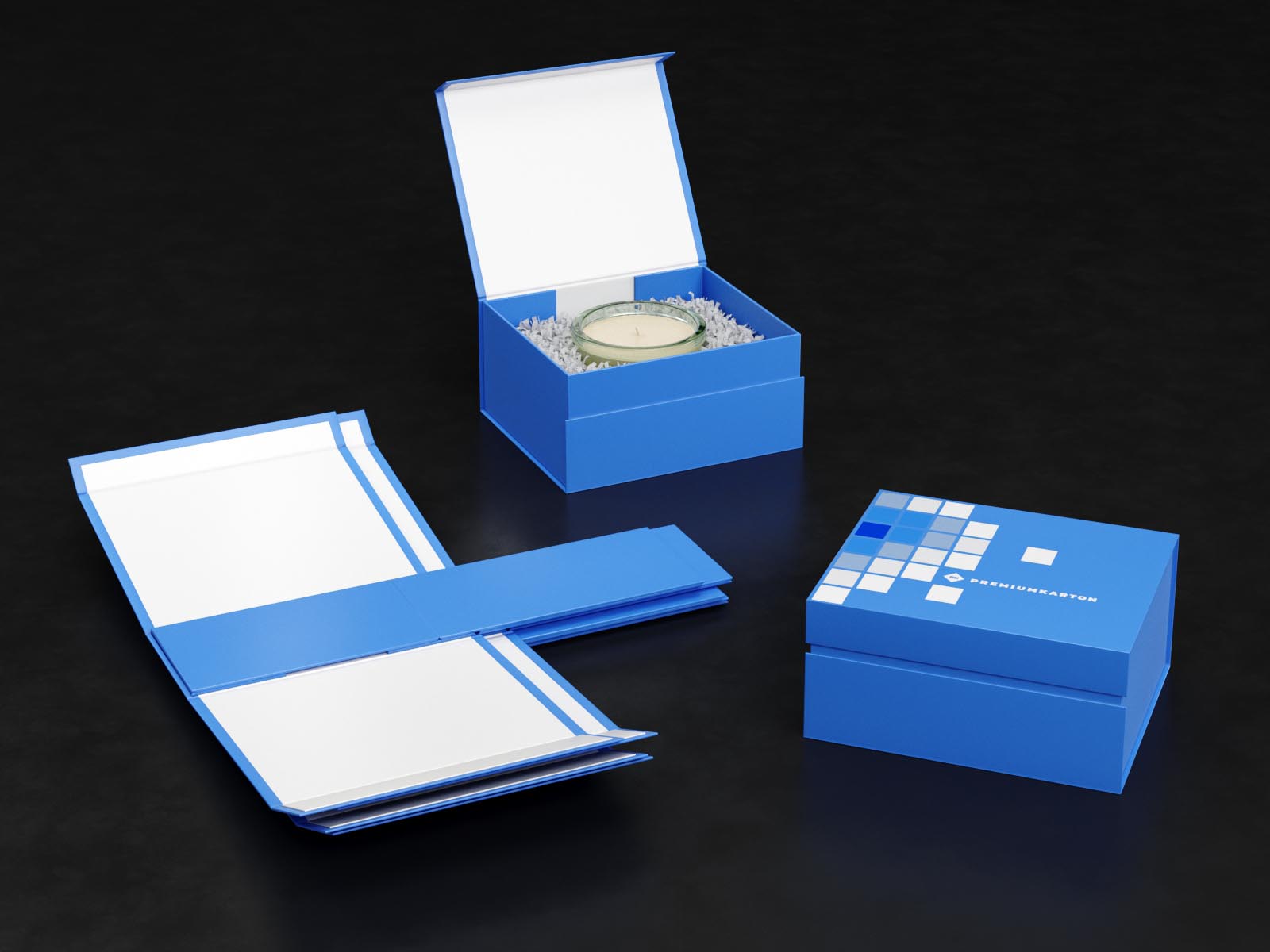 występuje tylko w wersji z zamknięciem magnetycznym. Innowacyjna konstrukcja sprawia, że opakowanie może być transportowane oraz składowane „na płasko”. Złożenie opakowania jest niezwykle proste i nie potrzeba do tego żadnych narzędzi. Po złożeniu pudełko nabiera docelowej formy i dorównuje jakością pozostałym opakowaniom premium o standardowej konstrukcji.