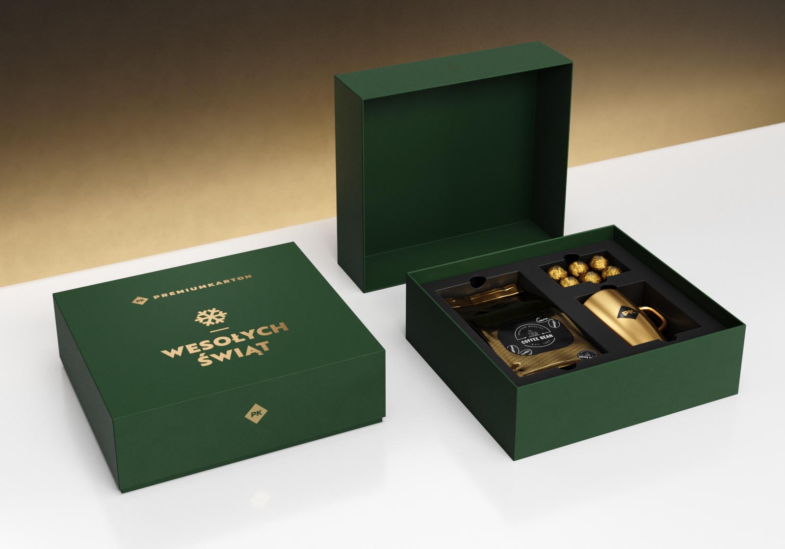 to najpopularniejszy typ opakowania premium. Składa się z dwóch elementów: denka i wieczka. W zależności od konstrukcji wieczko może zakrywać denko na różnej wysokości. Pudełko z wieczkiem jest najprostszym i najtańszym rozwiązaniem wśród opakowań premium. Dzięki swojej konstrukcji jest również najbardziej solidne.